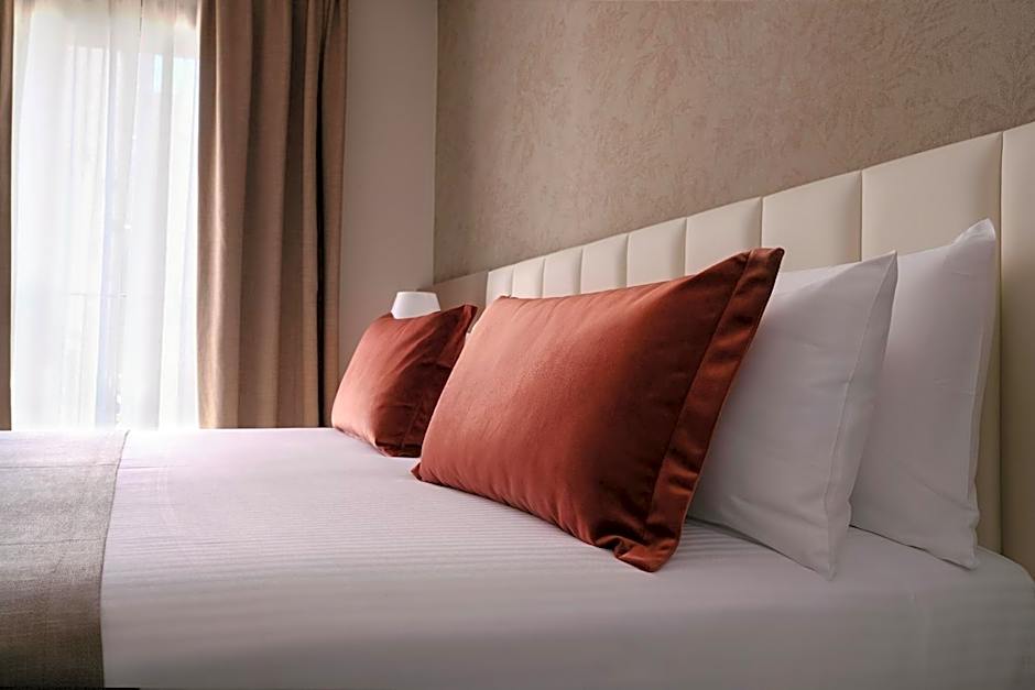 From Standard Rooms to expansive Junior Suites, the lineup covers different travel styles. The Standard Room brings a Queen-size bed in 194 square feet, accommodating 2 adults and 1 child. The Deluxe Double Room offers a Queen bed in a 215-square-foot layout. For larger parties, the Junior Suite family includes a Standard Junior Suite with a Double bed (accommodates up to 5 adults and 3 children) and a Junior Suite with Terrace at 269 square feet featuring a Queen bed for sunny days on a private terrace.